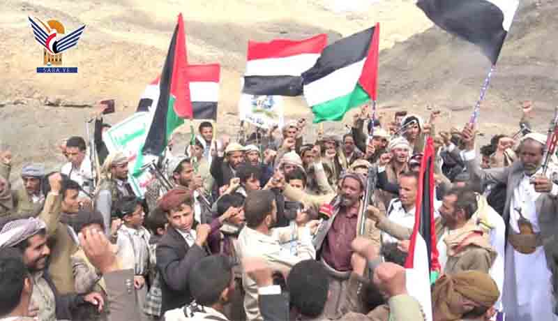 ردد المشاركون في المسير الذي حضره مدير عام المديرية صالح معيض ونائب التعبئة العامة بالمديرية أسعد صالح وتعبئة عزلة قروى صادق القمدي، الشعارات المعبرة عن الغضب والاستنكار لجرائم الإبادة بحق أبناء غزة التي يرتكبها الكيان الصهيوني منذ عامين.