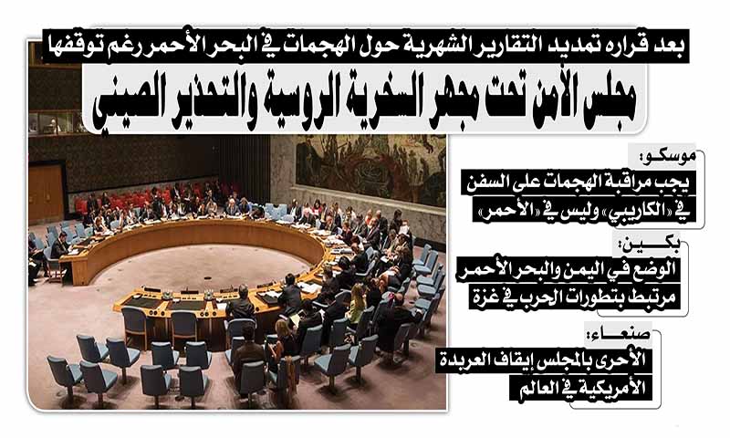 بعد قراره تمديد التقارير الشهرية حول الهجمات في البحر الأحمر رغم توقفها.. مجلس الأمن تحت مجهر السخرية الروسية والتحذير الصيني