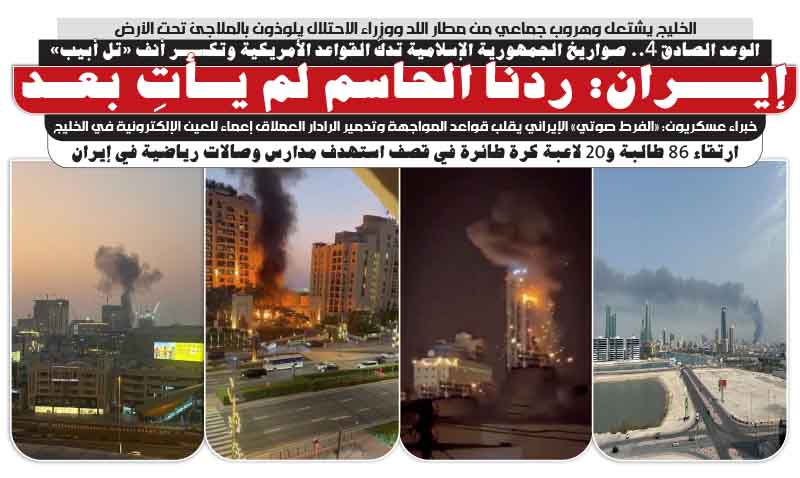 الخليج يشتعل وهروب جماعي من مطار اللد ووزراء الاحتلال يلوذون بالملاجئ تحت الأرض.. إيـران: ردنا الحاسم لم يأتِ بعد