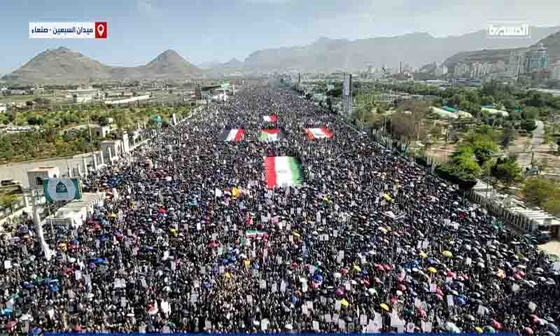 حشود مليونية بصنعاء تؤكد وحدة صف محور المقاومة في مواجهة الطغيان الأمريكي الإسرائيلي