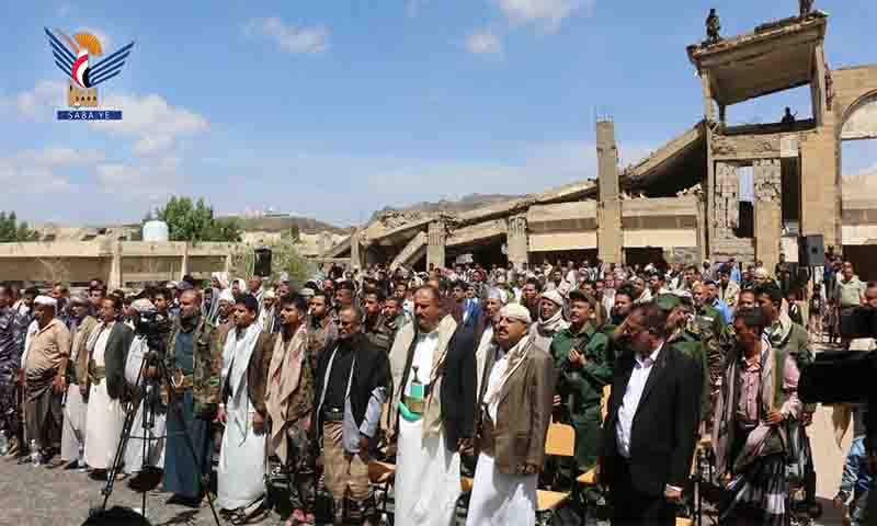 مسيرة حاشدة في مسرح جريمة حافلة طلاب ضحيان بصعدة إحياء ليوم الصمود الوطني