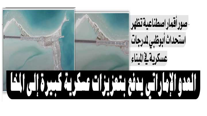 صور أقمار اصطناعية تظهر استحداث أبوظبي لمدرجات عسكرية في الميناء.. العدو الإماراتي يدفع بتعزيزات عسكرية كبيرة إلى المخا