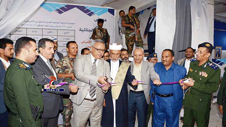 رئيسا مجلسا الوزراء والقضاء الأعلى يفتتحان معرض الأدلة الجنائية لجرائم العدوان على اليمن