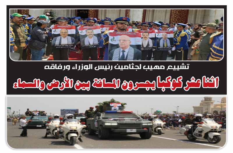 تشييع مهيب لجثامين رئيس الوزراء ورفاقه .. اثنا عشر كوكبا يجسرون المسافة بين الأرض والسماء