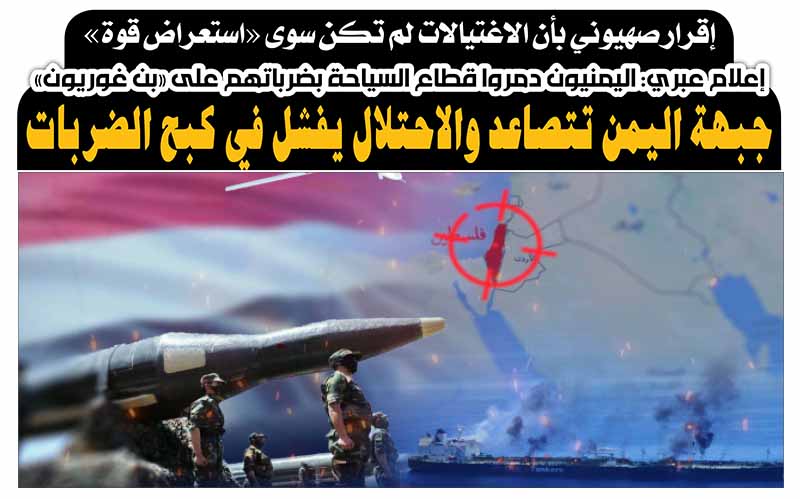 إعلام عبري: اليمنيون دمروا قطاع السياحة بضرباتهم على «بن غوريون».. جبهة اليمن تتصاعد والاحتلال يفشل في كبح الضربات