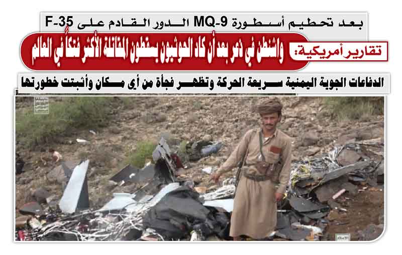 تقارير أمريكية:واشنطن في ذعر بعد أن كاد الحوثيون يسقطون المقاتلة الأكثر فتكاً في العالم
