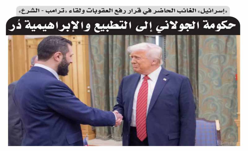 «إسرائيل» الغائب الحاضر في قرار رفع العقوبات ولقاء «ترامب - الشرع».. حكومة الجولاني إلى التطبيع والإبراهيمية دُر
