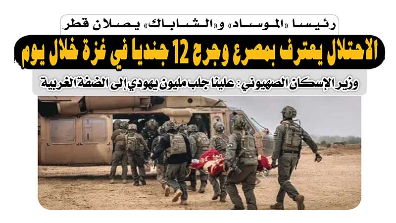 رئيسا «الموساد» و«الشاباك» يصلان قطر.. الاحتلال يعترف بمصرع وجرح 12 جنديا في غزة خلال يوم