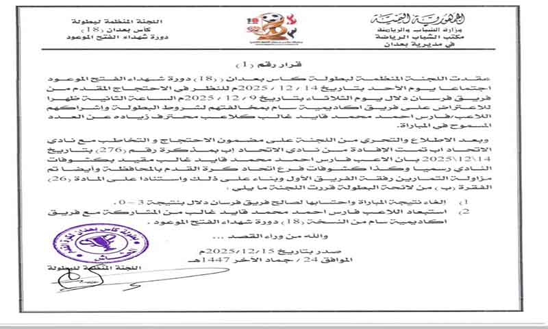 الـمــزيـدإب / لا ميديا - أصدرت اللجنة المنظمة للنسخة 18 من بطولة كأس بعدان, التي ينظمها نادي صقور بعدان تحت . .