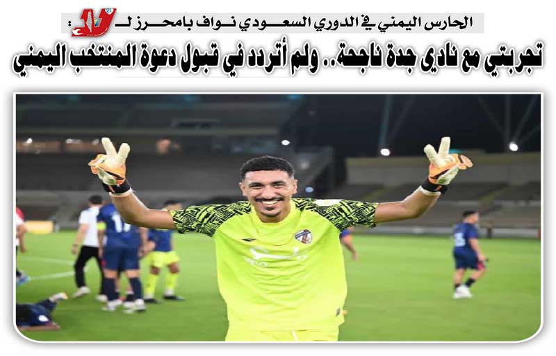 الحارس اليمني في الدوري السعودي نواف بامحرز لـ«لا»:تجربتي مع نادي جدة ناجحة.. ولم أتردد في قبول دعوة المنتخب اليمني