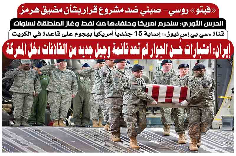 أفادت وكالة "تسنيم" الإيرانية، بتراجع بارجة عسكرية أمريكية انطلقت، اليوم السبت، من ميناء "الفجيرة" الإماراتي في محاولة لاجتياز مضيق هرمز، دون الحصول على تصريح من القوات المسلحة الإيرانية. وذكرت أن ...