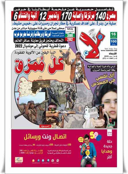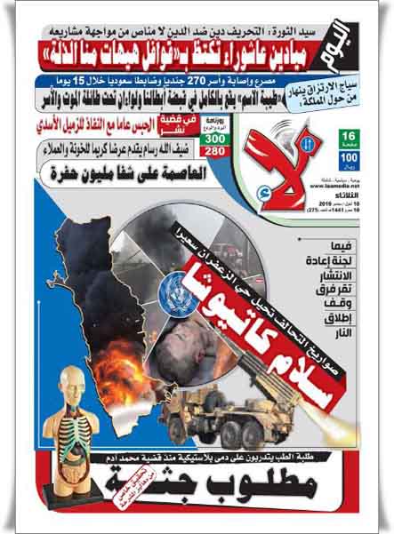 موقع ( لا ) الأخباري المستقل © 2016 - 2018 جميع الحقوق محفوظة     |     تصميم أمنية جرافيكس