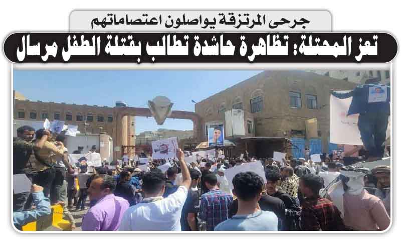 جرحى المرتزقة يواصلون اعتصاماتهم.. تعز المحتلة: تظاهرة حاشدة تطالب بقتلة الطفل مرسال