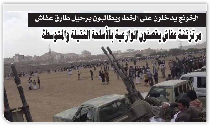 الخونج يدخلون على الخط ويطالبون برحيل طارق عفاش.. مرتزقة عفاش يقصفون الوازعية بالأسلحة الثقيلة والمتوسطة