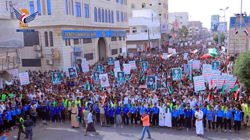 احتشد أبناء محافظة الحديدة، عصر اليوم في مركز ومديريات المحافظة في 26 ساحة بمسيرات "مع غزة.. جبهات ا. .