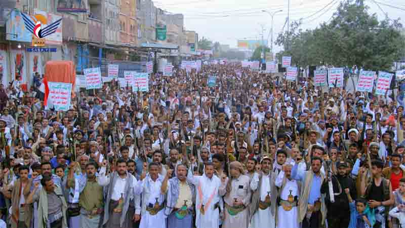 مسيرات ووقفات جماهيرية حاشدة بالبيضاء تنديدا بمجازر العدو الصهيوني ونصرة للقضية الفلسطينية