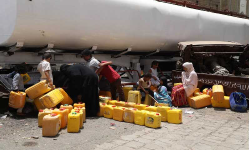 المرتزق الجبولي يحتجز الوايتات في منطقة دُبَع.. صهريج الماء في تعز المحتلة بـ200 ألف ريال