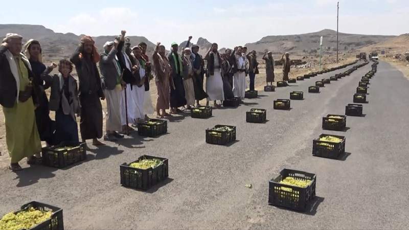 سير أبناء مديرية بني بهلول بمحافظة صنعاء، اليوم السبت، قافلة من الأعناب للمرابطين في جبهات الدفاع عن. .