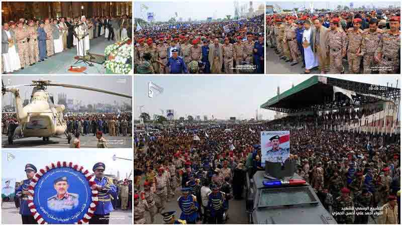 في موكب جنائزي مهيب تقدمه الرئيس المشاط.. صنعاء تودع قائد القوات الجوية الشهيد اللواء أحمد الحمزي