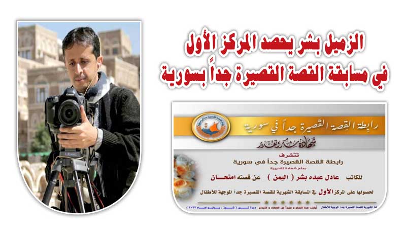 الـمــزيـدخاص / لا ميديا - حصل الزميل الصحفي والقاص عادل بشر على المركز الأول في مسابقة القصة القصيرة، التي أ. .