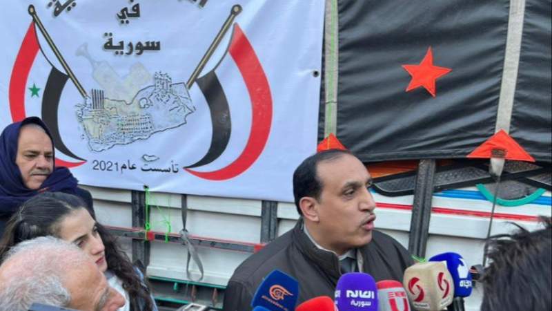 انطلقت قافلة إغاثية، اليوم السبت، تحت شعار "من اليمن إلى الشام كلنا مقاومة" مقدمة من الجالية اليمنية. .