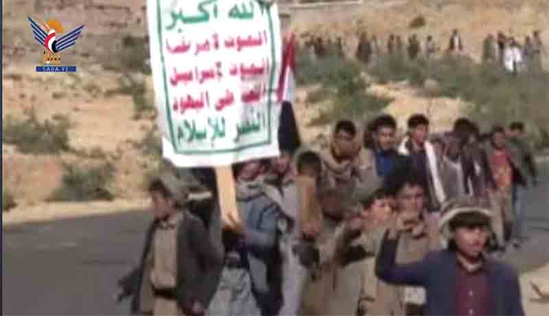 نظمت التعبئة العامة في مديرية بني العوام محافظة حجة عرضاً ومسيرا لخريجي دورات "طوفان الأقصى"، في عزل. .