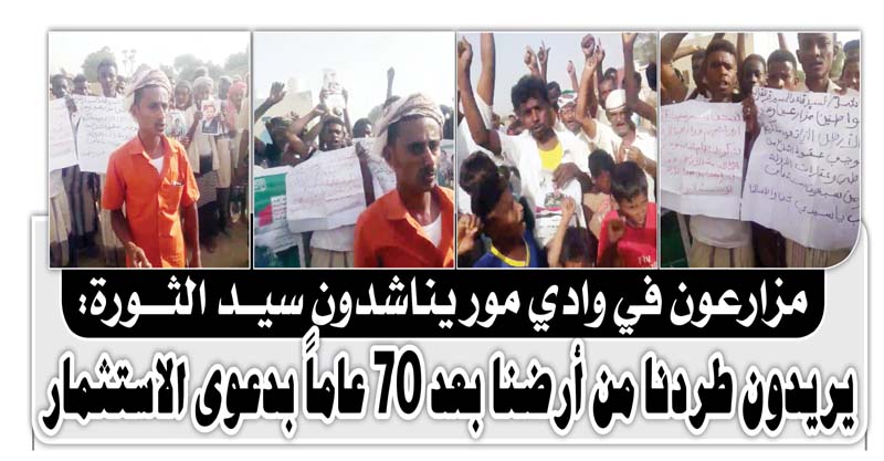 مزارعون في وادي مور يناشدون سيد الثورة:يريدون طردنا من أرضنا بعد 70 عاماً بدعوى الاستثمار