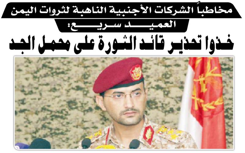 مخاطباً الشركات الأجنبية الناهبة لثروات اليمن.. العميد سريع:خـذوا تحذير قائد الثورة على محمل الجد