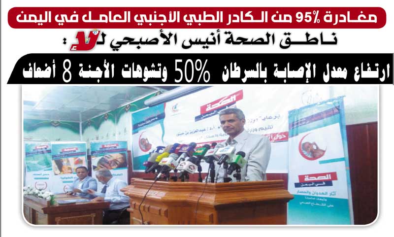 ناطق الصحة أنيس الأصبحي لـ«لا»:ارتفاع معدل الإصابة بالسرطان 50% وتشوهات الأجنة 8 أضعاف