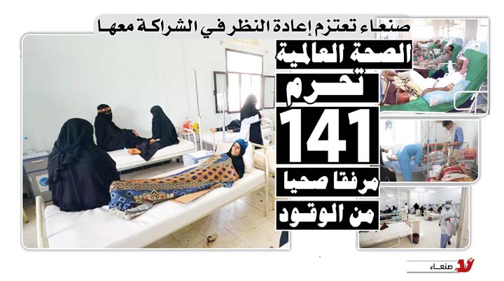 صنعـاء تعتزم إعادة النظر فـي الشراكـة معها.. الصحة العالمية تحــرم ١٤١ مرفقا صحيا من الوقـود
