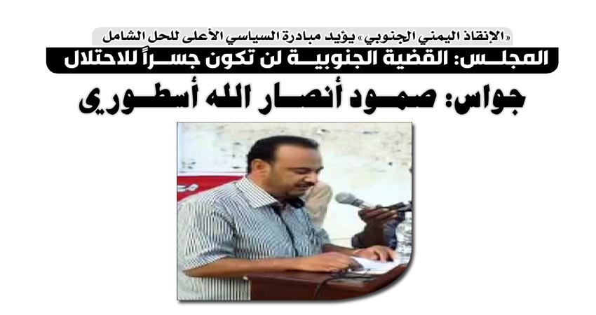 «الإنقاذ اليمني الجنوبي» يؤيد مبادرة السياسي الأعلى للحل الشامل.. جواس: صمود أنصار الله أسطوري