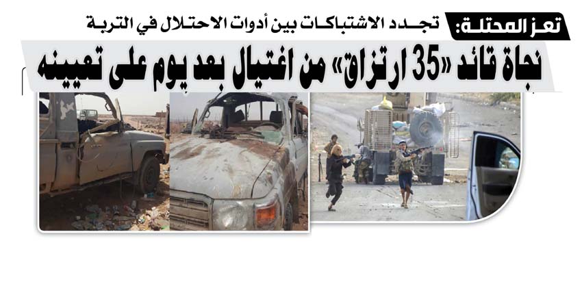 نجاة قائد «35 ارتزاق» من اغتيال بعد يوم على تعيينه.. تعز المحتلة: تجدد الاشتباكات بين أدوات الاحتلال في التربة