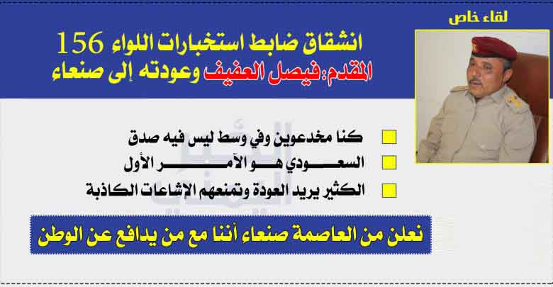 الـمــزيـدأعلن ضابط استخبارات ما يسمى اللواء 156 (محور الجوف)، المقدم فيصل أحمد محمد العفيف، انشقاقه عن صفوف ا. .