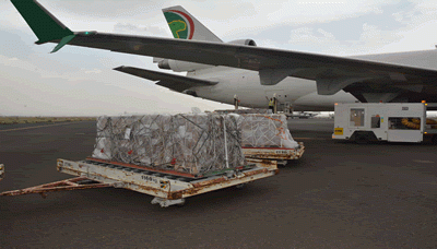 وصلت مطار صنعاء الدولي طائرة شحن تابعة لمنظمة الصحة العالمية على متنها 18طن من المساعدات الطبية والع. .