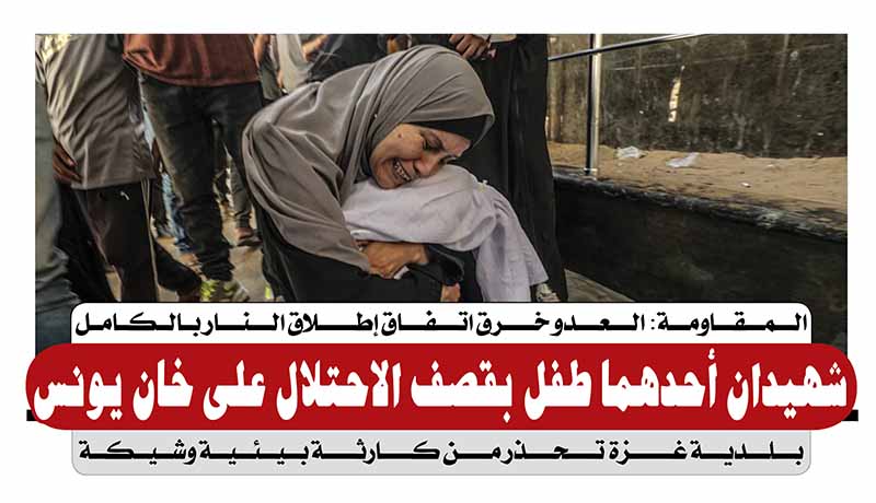 المقاومة: العدو خرق اتفاق إطلاق النار بالكامل.. شهيدان أحدهما طفل بقصف الاحتلال على خان يونس