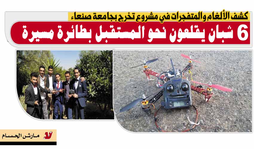 كشف الألغام والمتفجرات في مشروع تخرج بجامعة صنعاء .. 6 شبان يقلعون نحو المستقبل بطائرة مسيرة