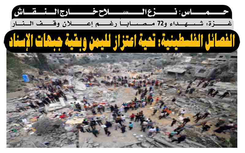 حماس: نزع السلاح خارج النقاش .. الفصائل الفلسطينية: تحية اعتزاز لليمن وبقية جبهات الإسناد