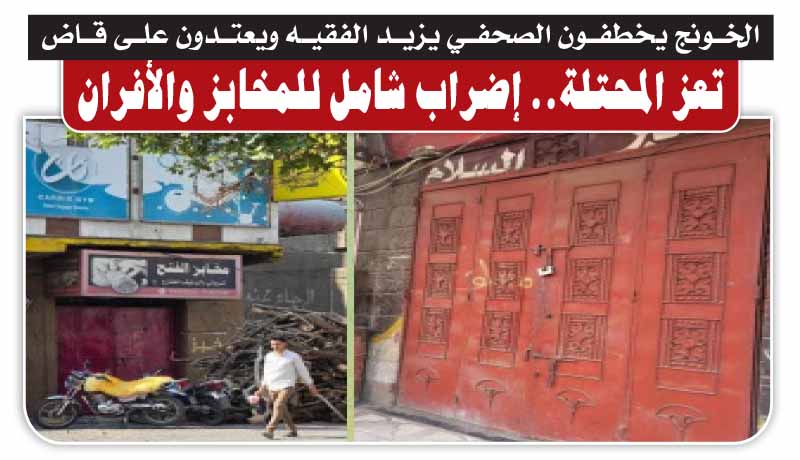 الخونج يخطفون الصحفي يزيد الفقيه ويعتدون على قاض.. تعز المحتلة.. إضراب شامل للمخابز والأفران