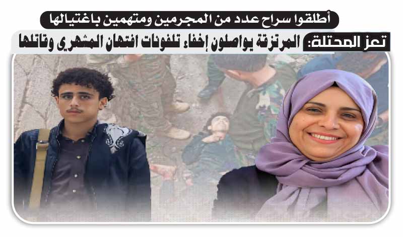 أطلقوا سراح عدد من المجرمين ومتهمين باغتيالها.. تعز المحتلة:المرتزقة يواصلون إخفاء تلفونات افتهان المشهري وقاتلها