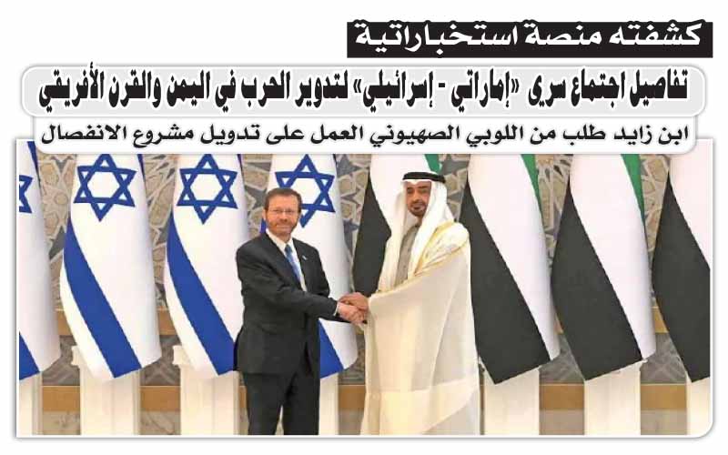 كشفته منصة استخباراتية .. تفاصيل اجتماع سري «إماراتي - إسرائيلي» لتدوير الحرب في اليمن والقرن الأفريقي