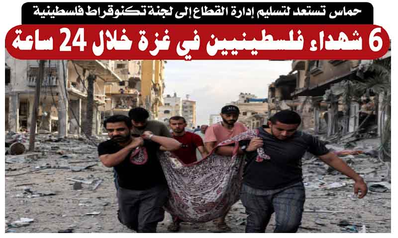 حماس تستعد لتسليم إدارة القطاع إلى لجنة تكنوقراط فلسطينية .. 6 شهداء فلسطينيين في غزة خلال 24 ساعة