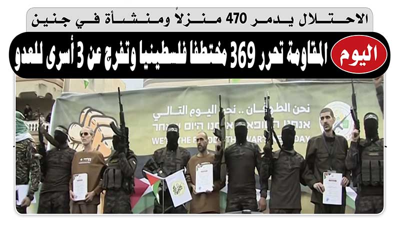 الـمــزيـدتقرير / لا ميديا - تُحرر المقاومة الفلسطينية اليوم 369 مختطفا فلسطينيا من زنازين العدو الصهيوني ضمن. .