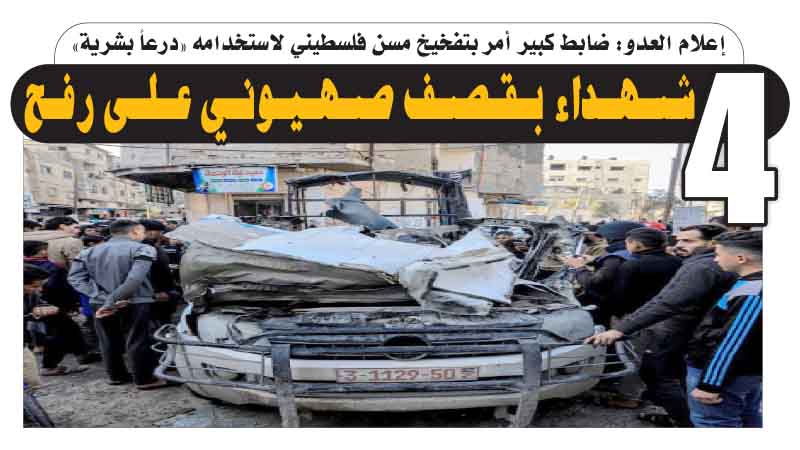 إعلام العدو: ضابط كبير أمر بتفخيخ مسن فلسطيني لاستخدامه «درعاً بشرية».. 4 شهداء بقصف صهيوني على رفح