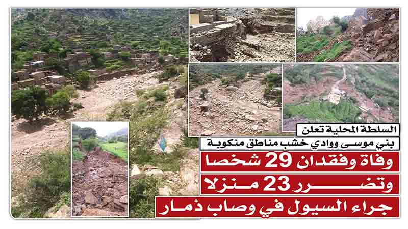 قائد الثورة يعزي أسر الضحايا ويؤكد ضرورة التعاون رسمياً وشعبياً بالمستوى المطلوب.. كارثة السيول في المحويت.. قرى اختفت وأخرى معزولة عن العالم