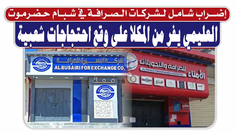 إضراب شامل لشركات الصرافة في شبام حضرموت.. العليمي يفر من المكلا على وقع احتجاجات شعبية