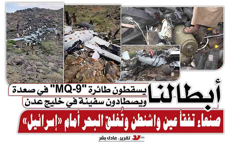 صنعاء تفقأ عين واشنطن وتُغلق البحر أمام «إسرائيل».. أبطالنا يسقطون طائرة "MQ-9" في صعدة ويصطادون سفينة في خليج عدن