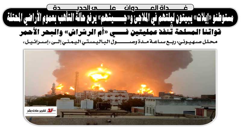غـداة العدوان على الحديدة.. مستوطنو «إيلات» يبيتون ليلتهم في الملاجئ و«جيشهم» يرفع حالة التأهب بعموم الأراضي المحتلة