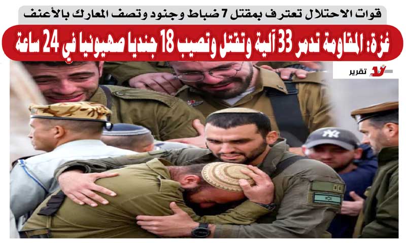 جنود الاحتلال تصف المعارك بالأعنف.. غزة: المقاومة تدمر 33 آلية وتقتل وتصيب 18 جنديا صهيونيا في 24 ساعة