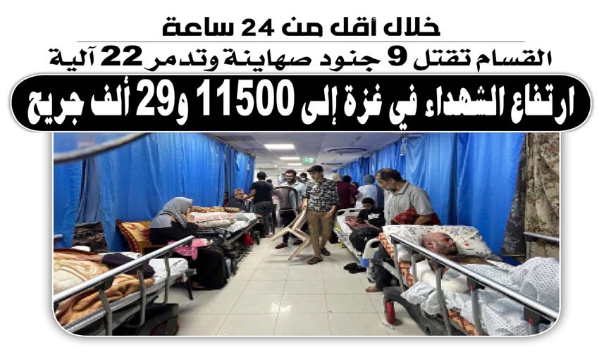 القسام تقتل 9 جنود صهاينة وتدمر 22 آلية.. ارتفاع الشهداء في غزة إلى 11500 و29 ألف جريح