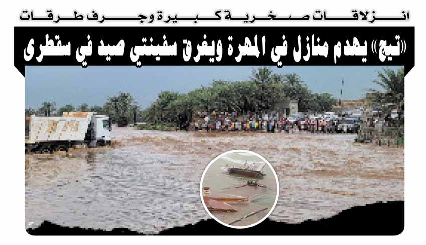 انزلاقات صخرية كبيرة وجرف طرقات.. «تيج» يهدم منازل في المهرة ويغرق سفينتي صيد في سقطرى